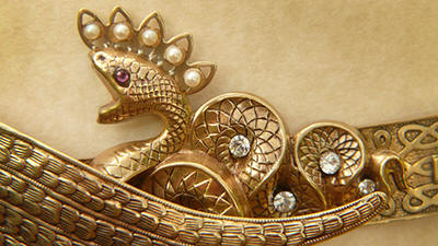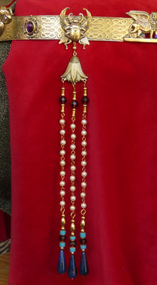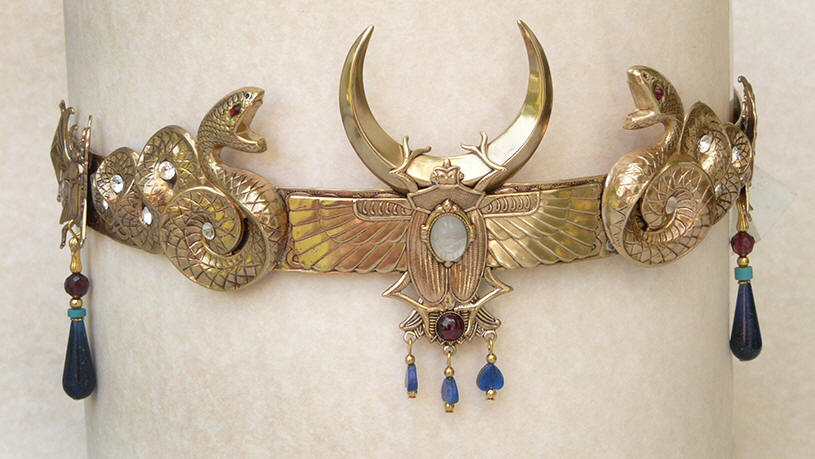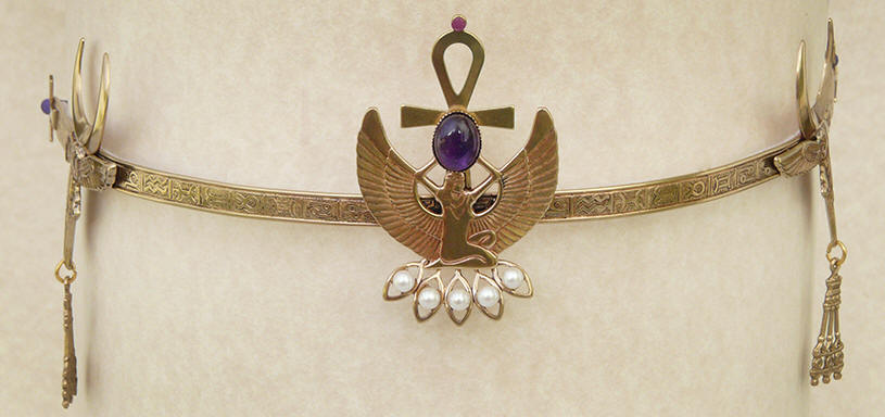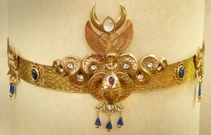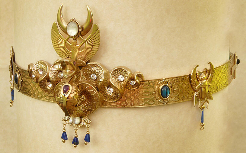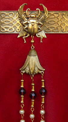 supports the Moon. Set with a carved quartz Scarab,